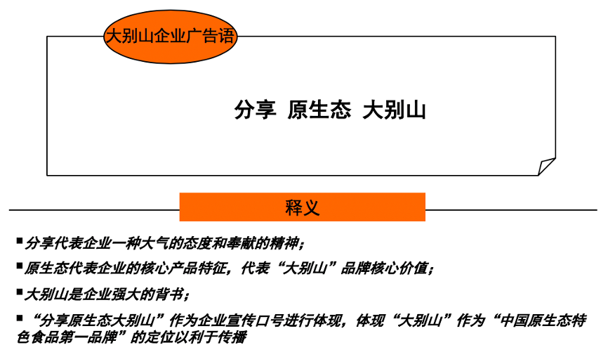明確企業(yè)廣告語為“分享原生態(tài)大別山”,充分植入原生態(tài)大別山的生態(tài)基因、歷史名望等,高舉“大別山生態(tài)農(nóng)業(yè)”的旗幟,使企業(yè)整合各方資源更容易,彰顯企業(yè)原生態(tài)品牌價值。