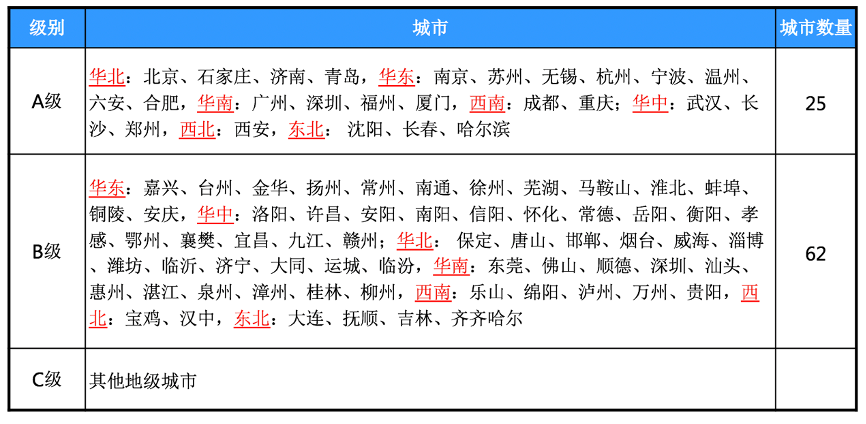 2)大別山食品將重點針對各區(qū)域的A、B級地市進行招商,并根據(jù)地市級別作為招商政策、銷售人員薪酬等級評定和差旅標準上分類確定的依據(jù)。