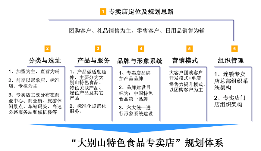 積極建設(shè)“數(shù)字化品牌專賣店”,明確大別山特色食品專賣店整體規(guī)劃,前期以團購客戶、禮品銷售為主,強化政務市場、商務市場的禮品團購市場拓展,積極招募團購代理商及“渠道合伙人”,建立健全“大別山品牌專賣連鎖體系”。