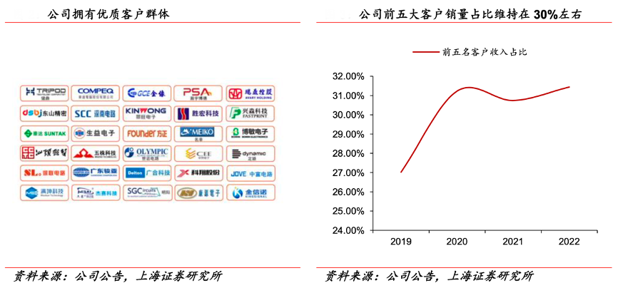 經(jīng)典案例:根據(jù)公司公告、上海證券研究所等綜合資訊表明,鼎泰高科公司在 PCB 刀具產(chǎn)品領(lǐng)域經(jīng)營多年,不斷研發(fā)改良產(chǎn)品工藝,提升產(chǎn)品質(zhì)量,取得了下游客戶的廣泛認(rèn)可。目前公司與國內(nèi)外知名 PCB 廠商建立了良好穩(wěn)定的合作關(guān)系,主要客戶包括健鼎科技、方正科技、華通電腦、瀚宇博德、勝宏科技、深南電路、景旺電子、崇達(dá)技術(shù)等。2019-2022年公司前五大客戶銷售收入占比穩(wěn)定在30%左右。
