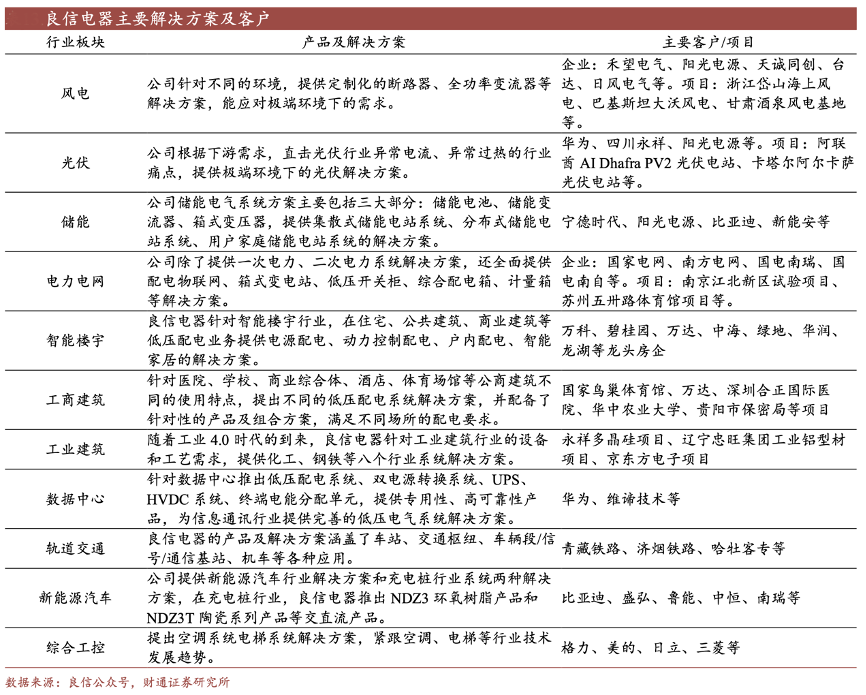 經典案例:根據(jù)良信公眾號、財通證券研究所等綜合資訊表明,良信股份為下游多行業(yè)客戶提供配電系統(tǒng)解決方案,積累了豐厚的客戶資源,客戶包括地產板塊的萬科、碧桂園、保利,通信領域的華為、移動、電信、聯(lián)通、新能源板塊的寧德時代、比亞迪、制造業(yè)板塊的格力、美的、三菱,以及國家電網(wǎng)、南方電網(wǎng)等。良信股份與客戶保持長期的合作,為客戶提供配套解決方案,品牌認可度顯著提升。