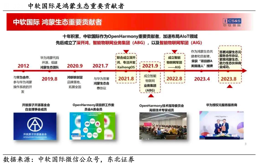 經(jīng)典案例:根據(jù)中軟國際微信公眾號(hào)、東北證券等綜合資訊表明,在 2B 領(lǐng)域,中軟國際公司基于"KaihongOS+超級(jí)設(shè)備管理平臺(tái)”,圍繞“感、聯(lián)、智、 控”一體化趨勢(shì),提供全國產(chǎn)自主可控的“端邊云”產(chǎn)品體系,面向水利、交 通、城市生命線、教育等行業(yè),提供從全場(chǎng)景解決方案到端到端交付的一站式 服務(wù)。