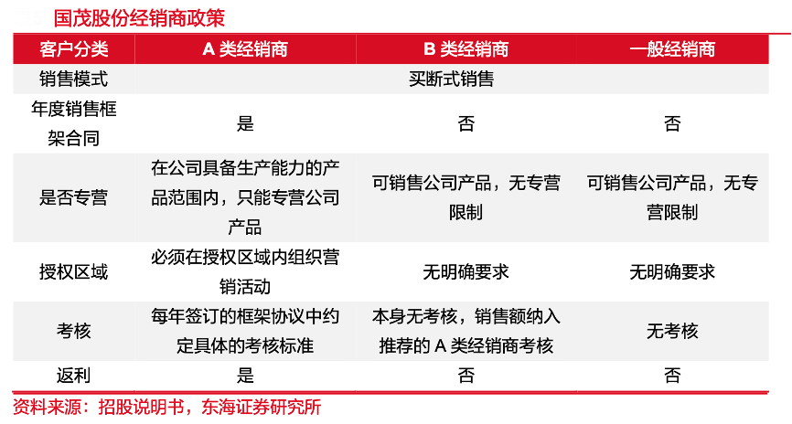 經(jīng)典案例:根據(jù)招股說(shuō)明書(shū)、東海證券研究所等綜合資訊表明,客戶開(kāi)發(fā)方面,國(guó)茂股份公司堅(jiān)持以“精準(zhǔn)銷售” 為指引,建立全方位覆蓋的營(yíng)銷網(wǎng)絡(luò)。核心經(jīng)銷商忠誠(chéng)度高,覆蓋面廣,銷售規(guī)模與效率較強(qiáng)。大客戶拓展方面,公司及子公司捷諾傳動(dòng)與軟控股份、贏合科技、金韋爾等細(xì)分行業(yè)優(yōu)質(zhì)客戶達(dá)成合作。