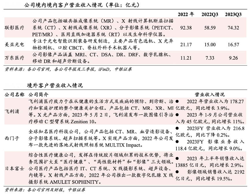 經(jīng)典案例: 根據(jù)各公司官網(wǎng)及財報、中銀證券等綜合資訊表明,奕瑞科技公司不斷實現(xiàn)國內(nèi)及海外客戶的突破:在醫(yī)療業(yè)務(wù)方面公司覆蓋多家醫(yī)療影像設(shè)備頭部企業(yè),國內(nèi)客戶包括有聯(lián)影醫(yī)療、萬東醫(yī)療、美亞光電等,海外客戶包括柯尼卡、富士、西門子、飛利浦等。