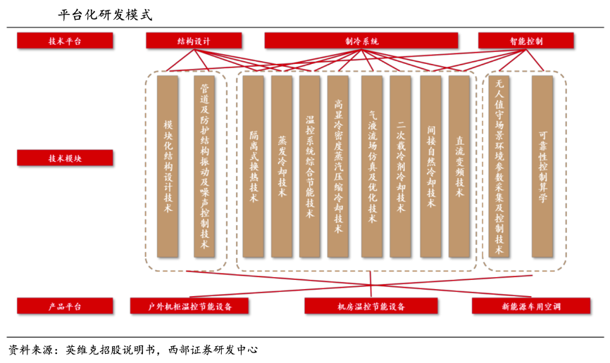經(jīng)典案例:根據(jù)英維克招股說明書、西部證券研發(fā)中心等綜合資訊表明,英維克在公司整體平臺競爭優(yōu)勢下,其已經(jīng)具備提供端到端全鏈條產(chǎn)品和方案的能力。隨著大型和超大型數(shù)據(jù)中心對能效要求更高、對建設速度要求越來越快,這些特點要求溫控供應 商具備技術創(chuàng)新能力和快速響應能力、同時對產(chǎn)品的散熱效率和性價比也有更高的要求。
