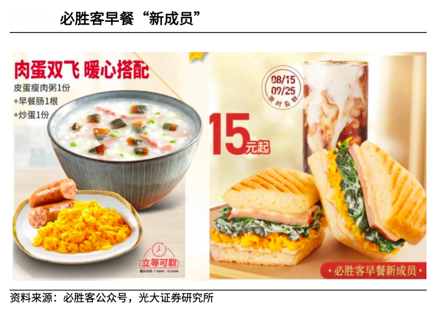 經(jīng)典案例:根據(jù)必勝客公眾號、光大證券研究所等綜合資訊表明,百勝中國公司采取多時段混合經(jīng)營策略,積極開發(fā)各時段產(chǎn)品,根據(jù)特定時段和特定場景供應(yīng)不同性質(zhì)產(chǎn)品,吸引不同時段消費者。近年來,肯德基陸續(xù)推出夜宵小食及下午茶產(chǎn)品,必勝客則繼續(xù)豐富早餐品類。