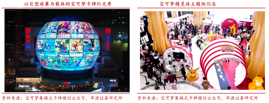 經(jīng)典案例:根據(jù)寶可夢集換式卡牌微信公眾號、華源證券研究所等綜合資訊表明,在線下推廣方面,通過設(shè)立快閃店,以實現(xiàn)寶可夢卡牌簡中的快速宣發(fā)。2023 年 3 月 18 日,寶可夢精靈球巨型球幕燈光秀空降靜安大悅城,寶可夢卡牌精靈球主題快閃店也于 3 月 31 日開始在上海靜安大悅城舉辦。
