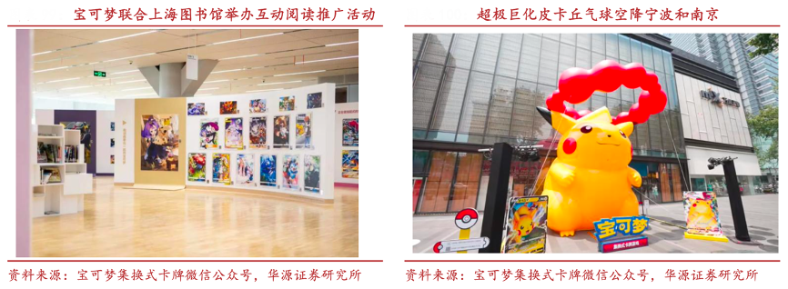 經(jīng)典案例:根據(jù)寶可夢集換式卡牌微信公眾號、華源證券研究所等綜合資訊表明,2023 年 5 月 16 日,寶可夢(上海)與上海圖書館聯(lián)合主辦 “開卷有夢——互動閱讀推廣系列活動”,包括為期兩個月的“寶可夢卡牌原畫交互藝術(shù)展”和持續(xù)一年的主題性“閱讀推 廣親子道館”,共計展出 50 位以上插畫師的近 200 幅原畫作品。