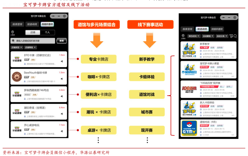 經(jīng)典案例:根據(jù)寶可夢卡牌會員微信小程序、華源證券研究所等綜合資訊表明,寶可夢卡牌官方道館超 800 家,為玩家提供交流、對戰(zhàn)場所。據(jù)玩世代,2022 年 10 月 官方公布的第一批“寶可夢卡牌道館”僅 30 家,覆蓋 21 座城市;2023 年 6 月則增加至超 800 家。