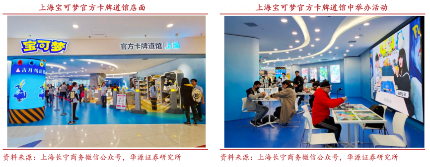 經(jīng)典案例:根據(jù)上海長(zhǎng)寧商務(wù)微信公眾號(hào)、華源證券研究所等綜合資訊表明,2023 年 12 月 6 日,寶可夢(mèng)全國(guó)首家線(xiàn)下門(mén)店“寶可夢(mèng)官方卡牌道館-上海”在龍之夢(mèng) 城市生活中心開(kāi)業(yè),占地約 600 平方米。店內(nèi)主要分為零售區(qū)和游戲互動(dòng)區(qū),以道館式設(shè)計(jì)巧妙劃分。零售區(qū)域包括卡牌、卡墊、服飾、玩偶等商品,玩家則在游戲互動(dòng)區(qū)進(jìn)行線(xiàn)下對(duì)戰(zhàn)。