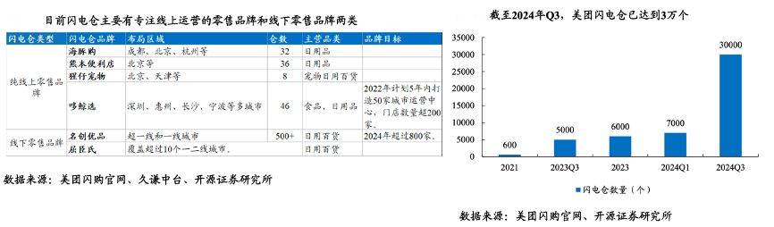 經(jīng)典案例:根據(jù)美團閃購官網(wǎng)、久謙中臺、開源證券研究所等綜合資訊表明,相比傳統(tǒng)零售商線上化,閃電倉經(jīng)營時長大大拓展,節(jié)省房租裝修和人力等運營成本,投入小。目前已誕生海豚購、熊本便利店、猩仔寵物等專注線上運營的實體零售商。如名創(chuàng)優(yōu)品在美團開設(shè)的閃電倉數(shù)量已達到500家,并計劃在年內(nèi)超過800家,成為業(yè)內(nèi)開設(shè)直營閃電倉數(shù)量最多 的零售品牌;屈臣氏在美團開設(shè)的閃電倉覆蓋了超過十個一二線城市。