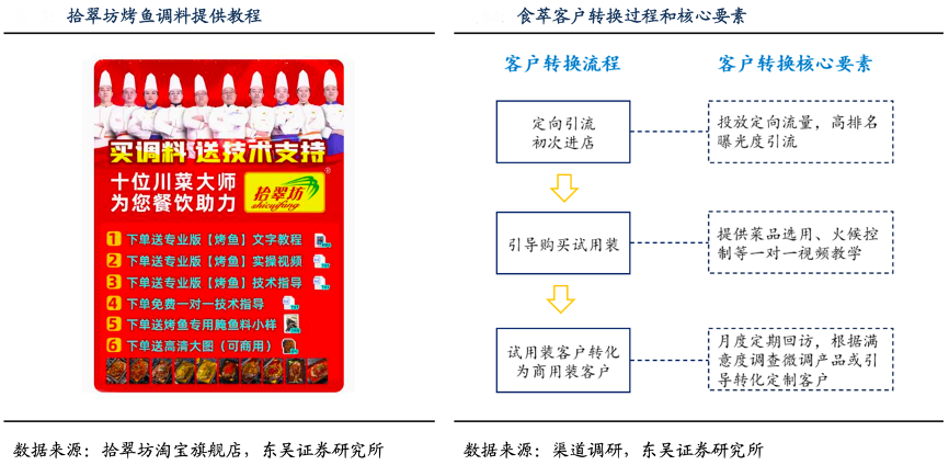 經(jīng)典案例:根據(jù)拾翠坊淘寶旗艦店、渠道調(diào)研、東吳證券研究所等綜合資訊表明,經(jīng)過多年探索,食萃已經(jīng)形成了較為完善的客戶拉新轉(zhuǎn)換機(jī)制,并將老客戶按照購買量分為五個(gè)等級(jí),有針對(duì)性地進(jìn)行維護(hù)留存。由于食萃主要為非專業(yè)廚師提供標(biāo)準(zhǔn)化產(chǎn)品,因此在客戶留存中食萃提供一對(duì)一服務(wù),包括調(diào)料使用方法、菜品選用、火候調(diào)整等教程,通過貼身服務(wù)增強(qiáng)客戶粘性,提高客戶轉(zhuǎn)化率。