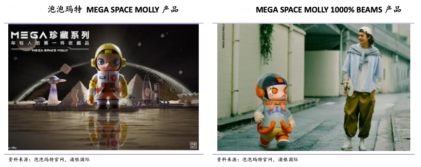 經(jīng)典案例:根據(jù)泡泡瑪特官網(wǎng)、浦銀國(guó)際等綜合資訊表明,為了推動(dòng)“潮玩藝術(shù)化”的趨勢(shì),泡泡瑪特早在 2021 年便推出了 Molly 的 高端產(chǎn)品線(xiàn) MEGA 珍藏系列——「MEGA 珍藏系列 1000% SPACE MOLLY × 海綿寶寶」和「MEGA 珍藏系列 400% SPACE MOLLY × 海綿寶寶」。相較盲盒,MEGA 產(chǎn)品不僅體積更大,做工也更為精細(xì)和考究。