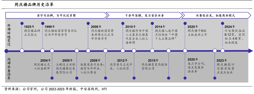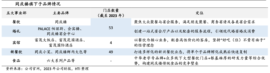 經(jīng)典案例:根據(jù)公司官網(wǎng)、公司2022-2023年財(cái)報(bào)、中安在線(xiàn)網(wǎng)、HTI等綜合資訊表明,同慶樓創(chuàng)始于 1925 年,主打徽菜,擁有百年品牌優(yōu)勢(shì),并于 2020 年成功上市。公司聚焦大眾餐飲和宴會(huì)婚慶服務(wù),也在不斷創(chuàng)新豐富自身業(yè)態(tài),目前主營(yíng)餐飲、賓館和食品三大業(yè)務(wù),并設(shè)置餐飲事業(yè)部、婚禮宴會(huì)事業(yè)部、賓館事業(yè)部、食品事業(yè)部和新餐飲事業(yè)部五大事業(yè)部協(xié)同支持業(yè)務(wù)發(fā)展。