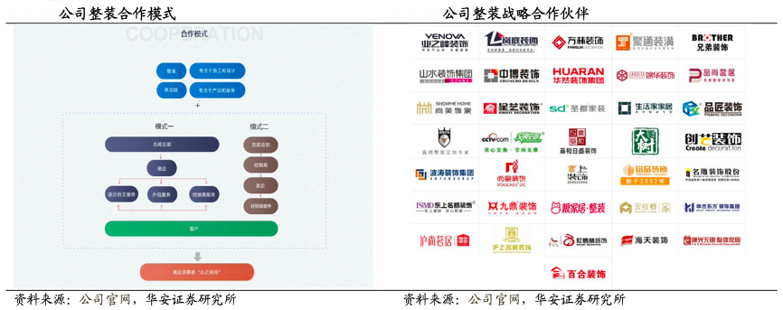 經(jīng)典案例:根據(jù)公司官網(wǎng)、華安證券研究所等綜合資訊表明,整裝賽道崛起,成為定制與裝 企融合發(fā)展的有利條件,2023年志邦家居公司整裝渠道合作業(yè)務(wù)增速達(dá) 34.50%。其相繼發(fā)布“超級服務(wù)邦”、“全空間高 效整裝”、“十大超能力”等多維賦能體系,與多家優(yōu)秀裝企達(dá)成合作,攜手共創(chuàng)共建整裝新生態(tài)。