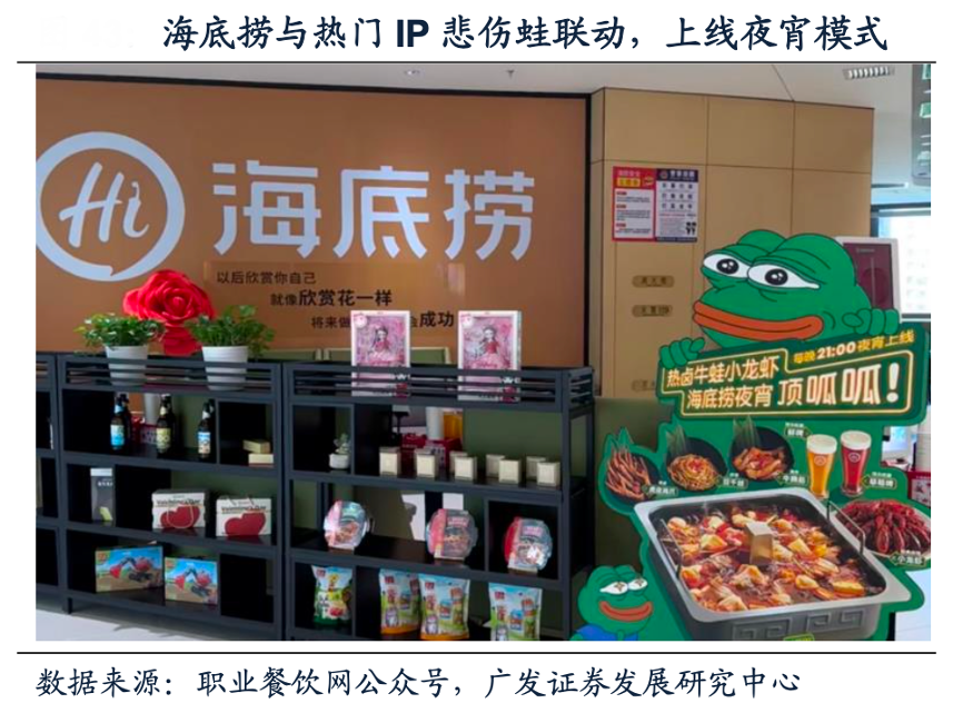 經典案例:根據(jù)職業(yè)餐飲網(wǎng)公眾號、廣發(fā)證券發(fā)展研究中心等綜合資訊表明,2023年暑期海底撈近1000家門店 每晚上線夜宵,增加小龍蝦、鹵味、牛蛙鍋、精釀啤酒等產品,聯(lián)動熱門IP悲傷蛙,每晚定時發(fā)起猜拳活動。