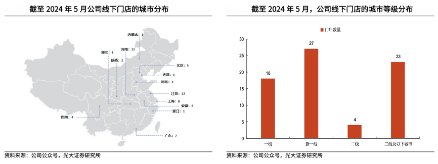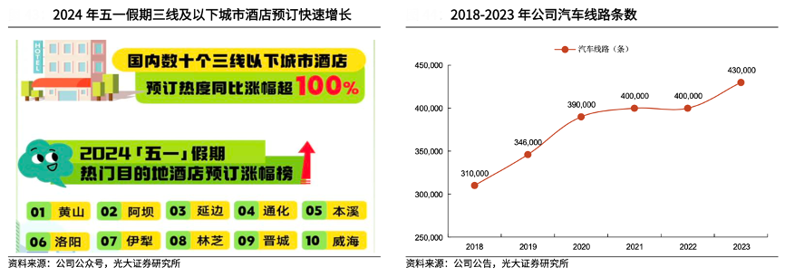 經(jīng)典案例:根據(jù)公司公眾號、光大證券研究所等綜合資訊表明,2023 年 6 月,同程旅行公司召開主題為“國民旅游新勢力”的線下發(fā)布會,宣布正式啟動線下門店加盟計劃,截至 2024 年 5 月,公司在全國擁有超 70 家線下門 店,絕大多數(shù)門店分布在公司大本營——江蘇省。從城市等級來看,一線、新一 線、二線,三線及以下城市的門店數(shù)量占比分別為 25%、38%、6%與 32%。
