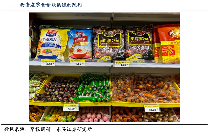 經典案例:根據草根調研、東吳證券研究所等綜合資訊表明,西麥食品積極布局零食量販渠道,與國內各量販品牌均展開合作,2023年公司在線下零食渠道同比增長超過180%,零食量販渠道的快速發(fā)展驅動公司線下業(yè)務新增量。