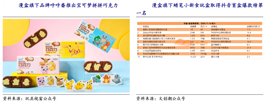 經(jīng)典案例:根據(jù)玩具視窗公眾號、文創(chuàng)潮公眾號、開源證券研究所等綜合資訊表明,食玩品牌 ACGBOX 漫盒在 2023 年同比取得了近 3 倍業(yè)績的增長。漫盒產(chǎn)品所覆蓋的渠道有便利店、Ole'精品超市、盒馬鮮生等,線上銷售有 B 站會員購、淘寶、天貓等渠道。