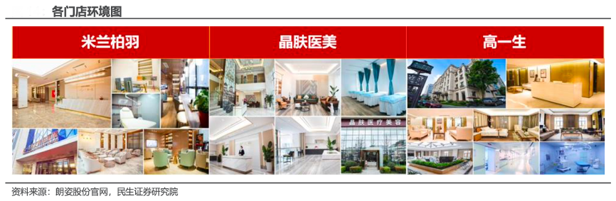 經(jīng)典案例:根據(jù)朗姿股份官網(wǎng)、民生證券研究院等綜合資訊表明,朗姿公司醫(yī)美涵蓋米蘭柏羽、晶膚醫(yī)美和高一生三大品牌,截至 2022 年,29 家機(jī)構(gòu)共覆蓋 7 個(gè)城市。米蘭柏羽、晶膚醫(yī)美和高一生分別定位高端、技術(shù)、輕醫(yī)美多點(diǎn)連鎖,形成立體發(fā)展格局,已在不同區(qū)域市場具有較高的品牌知名度和市場占有率。