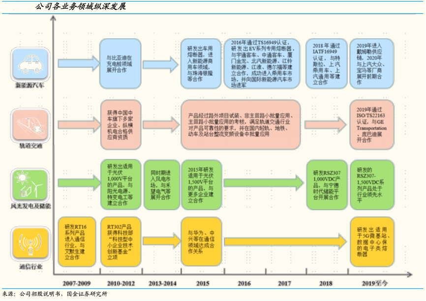 經(jīng)典案例:根據(jù)公司招股說明書、國金證券研究所等綜合資訊表明,中熔電氣公司聚焦電力熔斷器中高端市場,不斷開拓新領(lǐng)域,陸續(xù)進入通信、新能源光伏、軌道交通、新能源汽車市場。