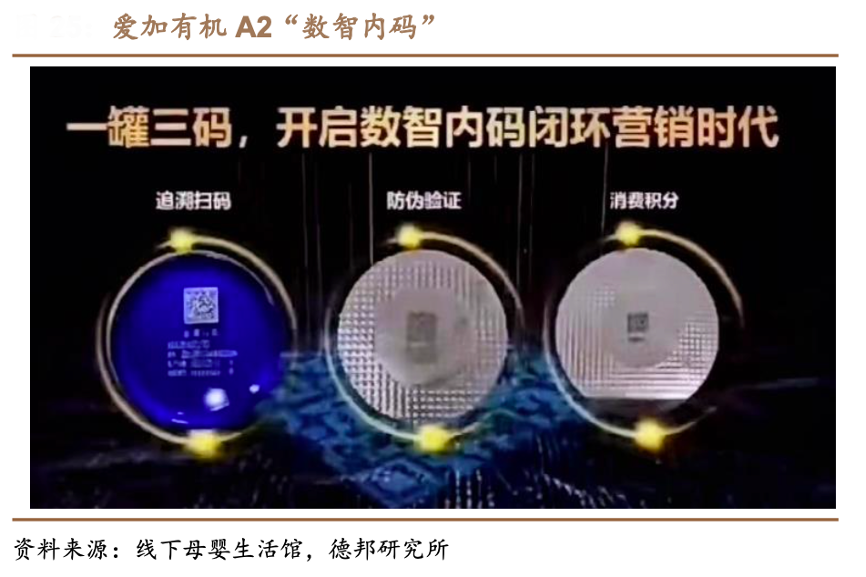 經(jīng)典案例:根據(jù)線下母嬰生活館、德邦研究所等綜合資訊表明,貝因美新品愛加有機(jī) A2 用“數(shù) 智內(nèi)碼”由“追溯碼+防偽驗(yàn)證碼+消費(fèi)積分碼”共同組成,分別完成追蹤溯源、防偽驗(yàn)證、消費(fèi)積分三大功能。“數(shù)智內(nèi)碼”可隨時(shí)查詢產(chǎn)品物流走向、銷售終端門店等信息,從而精準(zhǔn)把控產(chǎn)品自出廠、運(yùn)輸?shù)戒N售的每一個(gè)環(huán)節(jié),用技術(shù)手 段杜絕竄貨,充分保障渠道端權(quán)益及利潤。