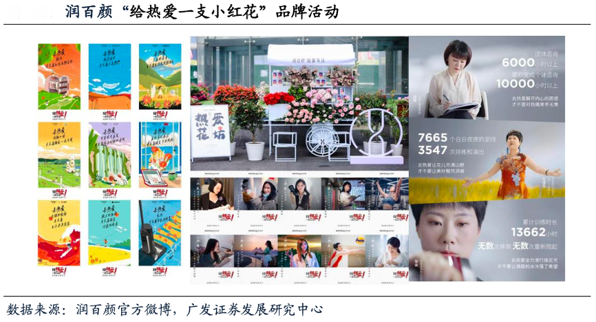 經(jīng)典案例:根據(jù)潤(rùn)百顏官方微博、廣發(fā)證券發(fā)展研究中心等綜合資訊表明,潤(rùn)百顏在情感與態(tài)度上不斷支持著正在崛起的中國(guó)女性力量,2022年6月潤(rùn)百顏“熱愛(ài)花坊”在杭州限時(shí)營(yíng)業(yè),拉開了潤(rùn)百顏“給熱愛(ài)一支小紅花”品牌活動(dòng)的序幕。