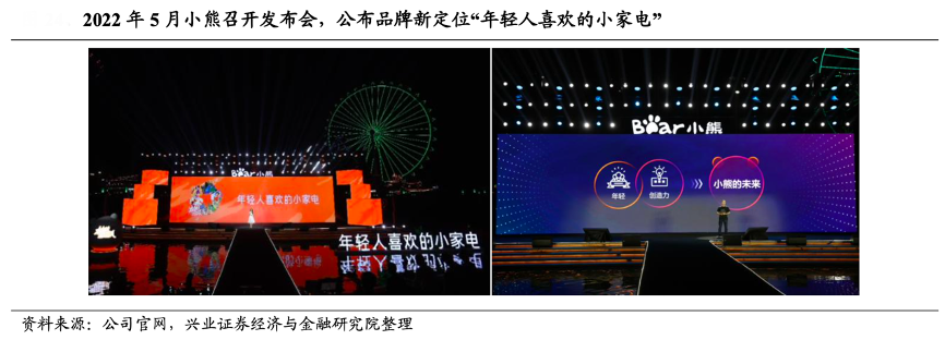 經(jīng)典案例:根據(jù)公司官網(wǎng)、興業(yè)證券經(jīng)濟(jì)與金融研究院等綜合資訊表明,2022 年 5 月 20 日,小熊舉辦戰(zhàn)略升級發(fā)布會,正式將品牌定位進(jìn)一步升級為“年輕人喜歡的小家電”,同時提出新定位下的四大產(chǎn)品策略:創(chuàng)新多元、精致時尚、小巧好用、輕松可及,在堅持高性價比及高顏值設(shè)計的產(chǎn)品定位基礎(chǔ)上,明確核心 用戶群體并以數(shù)字化建設(shè)賦能,加強(qiáng)消費者需求洞察,從用戶使用場景出發(fā),不斷優(yōu)化全渠道立體式覆蓋及全流程服務(wù)體系。