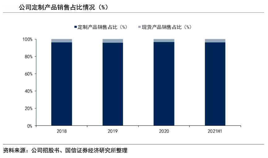 經(jīng)典案例:根據(jù)公司招股書、國信證券經(jīng)濟(jì)研究所等綜合資訊表明,迪阿股份公司主要采用定制化的銷售模式,2018-2021 上半年定制產(chǎn)品收 入占比分別為 96.39%、95.65%、96.61%和 96.23%。該銷售模式從品牌建設(shè)層面增強(qiáng)了產(chǎn)品的唯一性和獨(dú)特性,進(jìn)一步滿足了婚戀人群對愛情唯一性的心理需求,并有利于公司解消費(fèi)者時(shí)尚偏好。