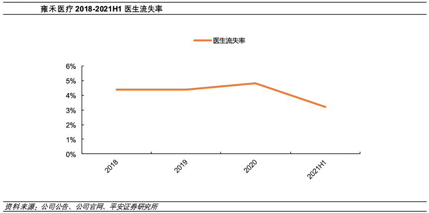 經(jīng)典案例:根據(jù)公司公告、公司官網(wǎng)、平安證券研究所等綜合資訊表明,雍禾醫(yī)療推出了《雍禾醫(yī)療醫(yī)生分級診療體系白皮書》,從 24 個維度對 醫(yī)生進行考核,公司的分級體系將醫(yī)生分為雍享院長、雍享主任、業(yè)務(wù)院長和業(yè)務(wù)主任四檔,對應不同的收費標準和薪酬標準,賦予醫(yī)生個人能力更高權(quán)重,價格體系更加直觀、透明。通過分級診療體系,公司更好留住 了醫(yī)生,2020 年公司醫(yī)生的流失率為 4.8%,根據(jù)沙利文的資料,其遠低于國內(nèi)植發(fā)機構(gòu)的醫(yī)生流失率。