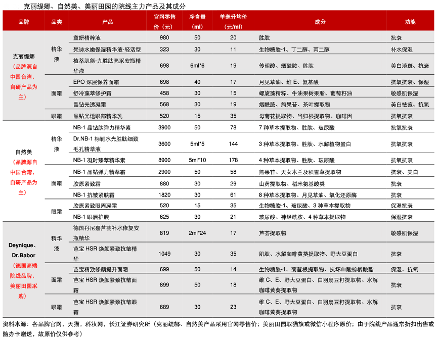 經(jīng)典案例:根據(jù)各品牌官網(wǎng)、天貓、科妝網(wǎng)、長江證券研究所等綜合資訊表明,美麗田園從 90 年代成立之初便引進(jìn)德國丹妮嘉、芭寶高端院線品牌,歐洲原裝進(jìn)口的概念沿用至今,其產(chǎn)品項目與品牌形象更為吻合,從門店布局、選址到產(chǎn)品項目陳列所體現(xiàn)出的品牌形象具備高度一致性,或能更精準(zhǔn)地鎖定其高端核心客群。