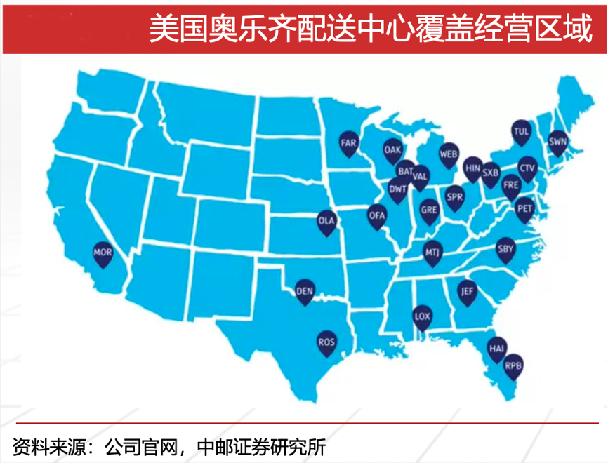 經(jīng)典案例:根據(jù)公司官網(wǎng)、中郵證券研究所等綜合資訊表明,以美國奧樂齊為例,根據(jù)公司官網(wǎng)奧樂齊在美國建立22個配送中心,基本每個超市所在州均有配送中心。短鏈配送體系使快速的商品周轉(zhuǎn)成為可能,降低公司庫存成本。