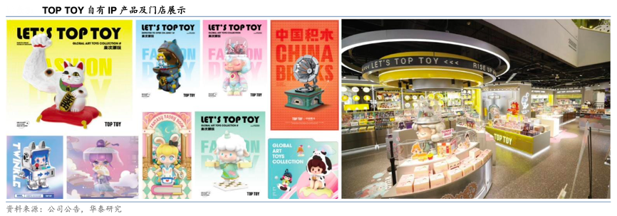 經(jīng)典案例:根據(jù)公司公告、華泰研究等綜合資訊表明,截至 2023 年 6 月 30 日,TOP TOY 提供約 7,000 個 SKU。不 同于以玩具反斗城為代表的傳統(tǒng)玩具零售商(大多僅銷售第三方品牌),TOP TOY 還通過 IP 聯(lián)名、推出自有 IP 方式打造自有產(chǎn)品。TOP TOY 已于 80 個流行品牌 IP 建立了聯(lián)名關(guān) 系,并與 IP 許可方聯(lián)名開發(fā)產(chǎn)品。