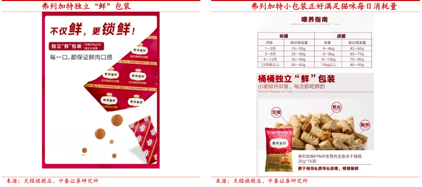 經(jīng)典案例:根據(jù)天貓旗艦店、中泰證券研究所等綜合資訊表明,乖寶寵物通過對貓咪和消費者的細致觀察,發(fā)現(xiàn)首先貓的食量相對較小,其次,貓對食物相對挑剔,因此養(yǎng)貓人在買貓糧的時候,相對謹慎。因此給予兩大痛點,公司采用小規(guī)格形式對弗列加特系列產(chǎn)品進行包裝。這樣能保證貓咪每次吃到的食物可以充分鎖鮮,不回潮。其次,消費者可以只買一小袋試吃裝進行嘗試,提高了用戶首次購買的破冰概率。