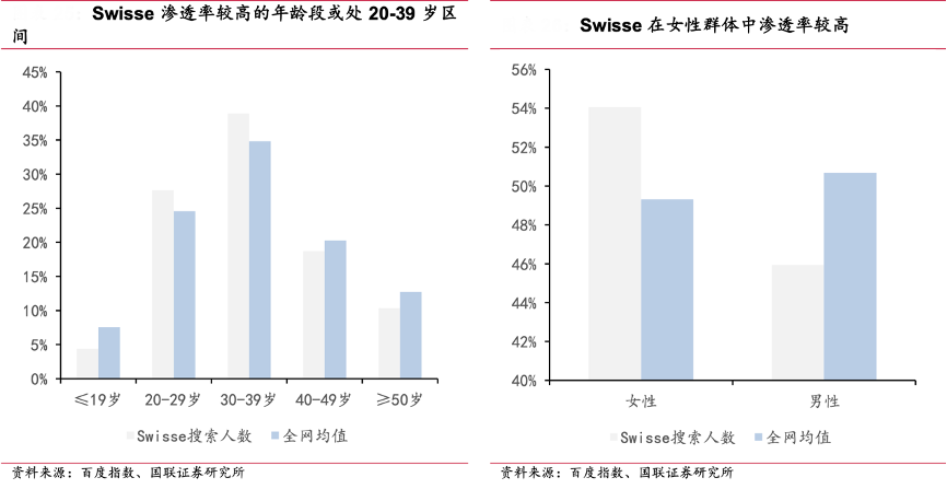 經(jīng)典案例:根據(jù)百度指數(shù)、國聯(lián)證券研究所等綜合資訊表明, Swisse主要客群畫像或?yàn)?20-39 歲區(qū)間女性消費(fèi)者,口服美容系列貼近主要客群需求,產(chǎn)品定位上更細(xì)分,如鎖水補(bǔ)水的“水光瓶”、打造輪廓線的“超光瓶等,終端表現(xiàn)較為突出,23Q4上市的超光瓶在 2023 年雙十一期間 GMV 高達(dá) 776 萬,超光瓶、膠原水光瓶銷量位居全平臺第一。