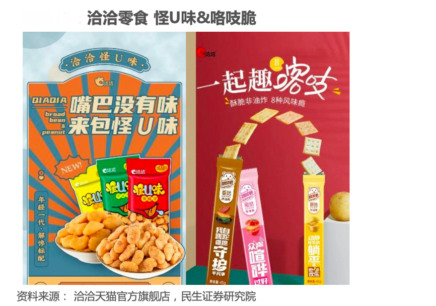經(jīng)典案例:根據(jù)洽洽天貓官方旗艦店、民生證券研究院等綜合資訊表明,2020年洽洽食品零食實(shí)現(xiàn)6.14億元收入,8年CAGR+0.99%。對于休閑食品,其已成立單獨(dú)休閑食品板塊,以“品類合伙人”方式進(jìn)行推廣。目前更加聚焦城市和客戶,打造出樣板市場 后,繼續(xù)復(fù)制現(xiàn)有優(yōu)勢。同時(shí)在客群上,其零食的受眾更集中于年輕人,將在抖音等新媒體渠道發(fā)力。