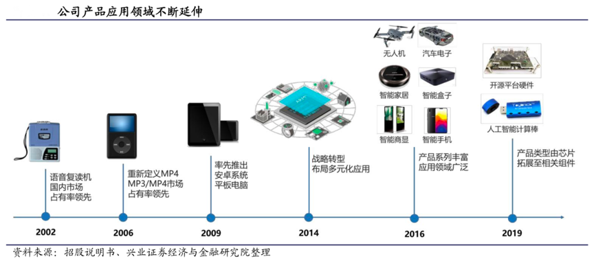 結(jié)合招股說明書、興業(yè)證券經(jīng)濟(jì)與金融研究院等綜合資訊表明,瑞芯微公司2014 年起向消費電子和智能物聯(lián)應(yīng)用領(lǐng)域延伸,并在 2016 年基本完成戰(zhàn)略轉(zhuǎn)型目標(biāo),產(chǎn)品系列不斷豐富,應(yīng)用領(lǐng)域從單一的平板電腦應(yīng)用市場擴(kuò)展至智能盒子、商顯、車載等領(lǐng)域,并不斷向國際高端消費電子市場邁進(jìn)。