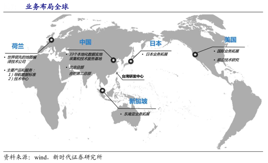 經(jīng)典案例:根據(jù)wind、新時(shí)代證券研究所等綜合資訊表明,四維圖新公司在美國(guó)硅谷、荷蘭、新加坡、日本 東京等地設(shè)立了全資子公司,深入跟蹤自動(dòng)駕駛等領(lǐng)域的前沿技術(shù)發(fā)展,推進(jìn) 5G 園區(qū)智能化解決方案、 Minedata 大數(shù)據(jù)平臺(tái)、商用車聯(lián)網(wǎng)解決方案等產(chǎn)品和服務(wù)在新加坡等國(guó)家和地區(qū)的本地化部署和聯(lián)測(cè)。