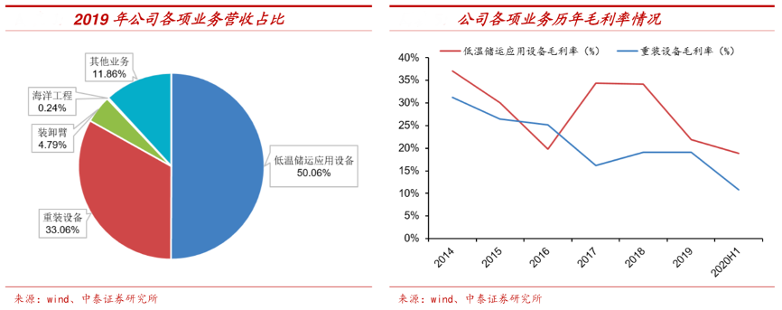 經(jīng)典案例:根據(jù)wind、中泰證券研究所等綜合資訊表明,富瑞特裝公司已建立起 LNG 全產(chǎn)業(yè)鏈優(yōu)勢。其通過內(nèi)部資源整合,在偏遠(yuǎn)井口氣開發(fā)、LNG 液化工廠建設(shè)及運營、LNG 罐箱智能化控制等方面形成經(jīng)營合力,提升業(yè)務(wù)板塊的市場開發(fā)能力和整體盈利水平。2020年上半年,其低溫儲運應(yīng)用設(shè)備實現(xiàn)營收5.52億元,同比增長32.26%,占營業(yè)總收入的比重高達 63.74%。
