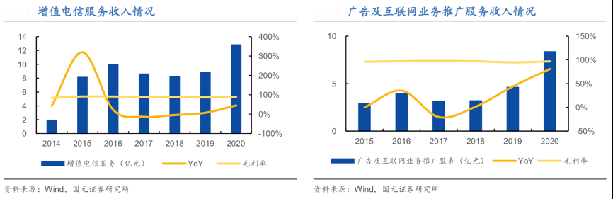 經(jīng)典方法:根據(jù)wind、國元證券研究院等綜合資訊表明,同花順公司目前主要涵蓋四大核心業(yè)務(wù):增值電信服務(wù)、廣告及互聯(lián)網(wǎng)業(yè)務(wù)推廣服務(wù)、軟件銷售及維護(hù)、基金銷售及其他交易手續(xù)費(fèi)等其他業(yè)務(wù)。其近年主營業(yè)務(wù)保持穩(wěn)健發(fā)展態(tài)勢,2018-2020年,增值電信服務(wù)營業(yè)收入 CAGR 達(dá) 24.93%,廣告及互聯(lián)網(wǎng)業(yè)務(wù)推廣服務(wù)營業(yè)收入CAGR 達(dá) 61.52%,其不斷豐富業(yè)務(wù)外延,深耕流量變現(xiàn)邏輯,業(yè)務(wù)發(fā)展更加多元化。
