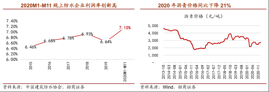 經(jīng)典案例:根據(jù)中國(guó)建筑防水協(xié)會(huì)、wind、招商證券等綜合資訊表明,瀝青作為主要原材料,占成本比例 20%以上,但瀝青作為大宗商品,企業(yè)擁有的議價(jià)權(quán)較為薄弱。為了應(yīng)對(duì)未來(lái)原材料價(jià)格上漲的風(fēng)險(xiǎn),龍頭企業(yè)東方雨虹、科順股份均擁有自己的原材料生產(chǎn)線作為倉(cāng)儲(chǔ),并依靠集中采購(gòu)降低其它原材料成本,增厚利潤(rùn)空間。