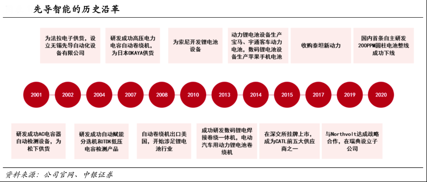 經(jīng)典案例:根據(jù)公司官網(wǎng)、中銀證券等綜合資訊表明,先導(dǎo)智能成立于2002 年,主要業(yè)務(wù)為鋰電設(shè)備、光伏設(shè)備、3C 設(shè)備、薄膜電容器設(shè)備和燃料電池設(shè) 備等非標(biāo)設(shè)備。其成立早期以電容設(shè)備為主,之后業(yè)務(wù)重心逐漸轉(zhuǎn)移至鋰電設(shè)備和光伏設(shè)備。目前鋰電設(shè)備為其核心業(yè)務(wù),2019年?duì)I收占比為 81.4%。