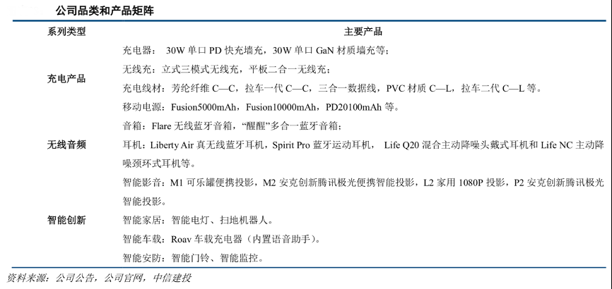 經(jīng)營(yíng)案例:根據(jù)公司公告、公司官網(wǎng)和中信建投等綜合資訊表明,安克創(chuàng)新公司產(chǎn)品包括充電產(chǎn)品、無(wú)線音頻產(chǎn)品、智能創(chuàng)新產(chǎn)品三大類。相比其他跨境同業(yè),其品類聚焦消費(fèi)電子,突出技術(shù)特點(diǎn),品類間協(xié)同性強(qiáng),便于強(qiáng)化消費(fèi)者整體認(rèn)知框架。