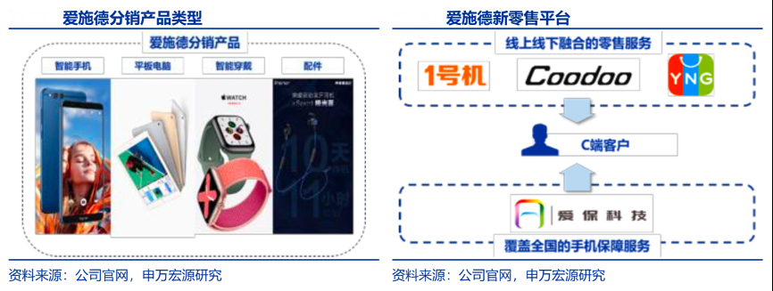 經典案例:根據(jù)公司官網、申萬宏源研究等綜合資訊表明,20H1 愛施德非手機產品銷售額為 27.98 億元,僅占比 10.35%。其將旗下電商平臺“由你購”移植至天貓,打造新零售 3C 數(shù)碼綜合店,通過輕店模式和門店技術的應用為線下零售門店數(shù)字化賦能并使其與由你購旗艦店的流量打通,并基于位置服務 (LBS)的深化運用為消費者帶來本地化服務的新零售體驗。