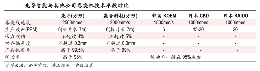 經(jīng)典案例:根據(jù)公司官網(wǎng)、高工鋰電、中銀證券等綜合資訊表明,以鋰電池核心設(shè)備卷繞機(jī)為例,先導(dǎo)的設(shè)備能夠?qū)崿F(xiàn)更好的張力控制、糾偏、卷繞精度等,同時(shí)在設(shè)備性價(jià)比方面顯著優(yōu)于 CKD 等日韓品牌。技術(shù)優(yōu)勢(shì)的突出體現(xiàn)為先導(dǎo)智能的卷繞機(jī)在 CATL 等全球龍頭公司的份額持續(xù)提升,整體市場(chǎng)占有率超過(guò) 50%。