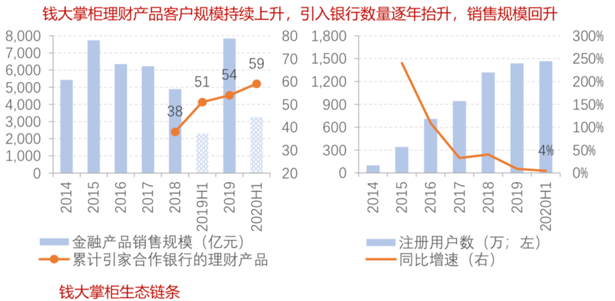經(jīng)典案例:根據(jù)公司財報、錢大掌柜官網(wǎng)和方正證券研究所等綜合資訊表明,截至2020年中,興業(yè)銀行“財富云”理財代銷累計與18家省級聯(lián)社達成合作,將興業(yè)產(chǎn)品端能力輸血至三四線中小銀行和農(nóng)村金 融機構,對癥中小型金融機構財富資質(zhì)羸弱痛點,同時又借小行渠道延伸了自己零售業(yè)務觸角。