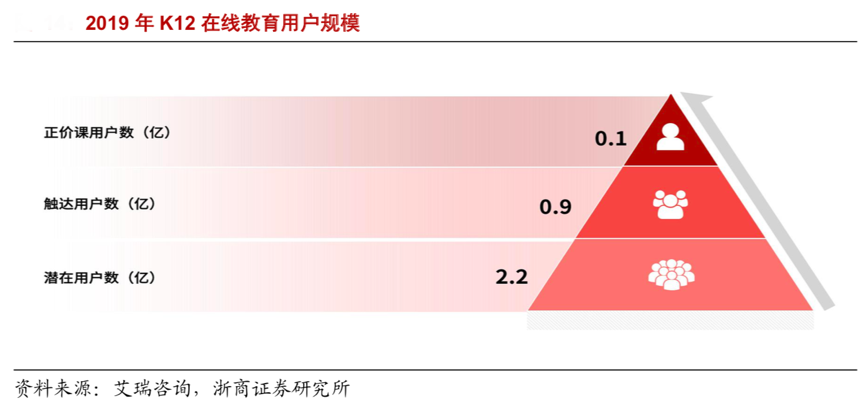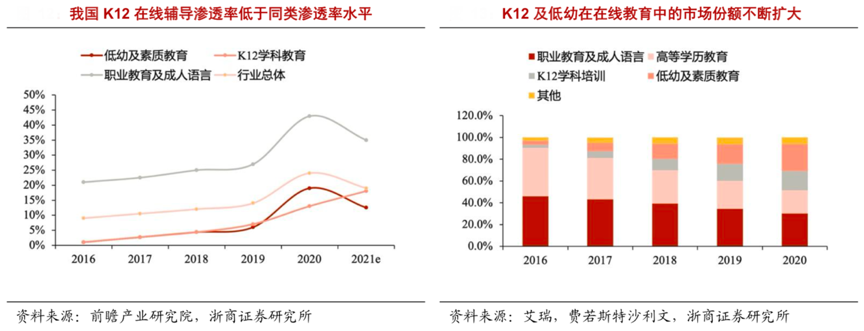 經(jīng)典案例:根據(jù)前瞻產(chǎn)業(yè)研究院、艾瑞、弗若斯特沙利文、浙商證券研究所等綜合資訊表明,隨著直播技術(shù)的不斷成熟,K12 在線教育產(chǎn)品在互動(dòng)性上不斷創(chuàng)新,增添了很多趣味性,且具有可回看、節(jié)約時(shí)間、名師招牌等優(yōu)勢(shì),與成人教育賽道相比,K12 培訓(xùn)具有LTV 長(zhǎng)、剛需性強(qiáng)、客戶基數(shù)大等優(yōu)點(diǎn),隨著滲透率的不斷提升,市場(chǎng)規(guī)模將不斷擴(kuò)大。