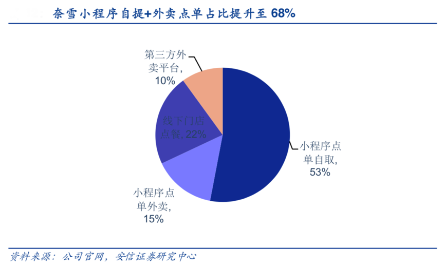 經(jīng)典案例:根據(jù)公司官網(wǎng)、安信證券研究中心等綜合資訊表明,結(jié)合奈雪公布的《2020 國慶中秋小長假奈雪的茶 大數(shù)據(jù)報(bào)告》數(shù)據(jù)顯示,國慶期間奈雪的消費(fèi)者中 53%選擇線上小程序點(diǎn)單自取,22%的顧客選擇線下門店點(diǎn)餐,小程序點(diǎn)單外賣和第三方外賣平臺(tái)分別占到了 15%和 10%。根據(jù)奈 雪發(fā)布的《2020 年新式茶飲白皮書》顯示 2019 年底奈雪開始搭建會(huì)員體系,當(dāng)前會(huì)員數(shù)已超 3000 萬。