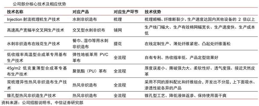 經(jīng)典案例:根據(jù)公司招股說(shuō)明書、中信證券研究部等綜合資訊表明,金春股份公司建立起了一套完整的生產(chǎn)工藝及產(chǎn)品技術(shù)研發(fā)體系,截至 2020 年 8 月,公司共有31項(xiàng)技術(shù)專利。以衛(wèi)生用品市場(chǎng)為例,其研發(fā)的雙面異性熱風(fēng)非織造布,可將產(chǎn)品液體吸收時(shí)間縮短為 2.1 秒,擴(kuò)散長(zhǎng)度可達(dá) 70mm,回滲量減少至 0.05g,在市場(chǎng)上獨(dú)樹一幟。