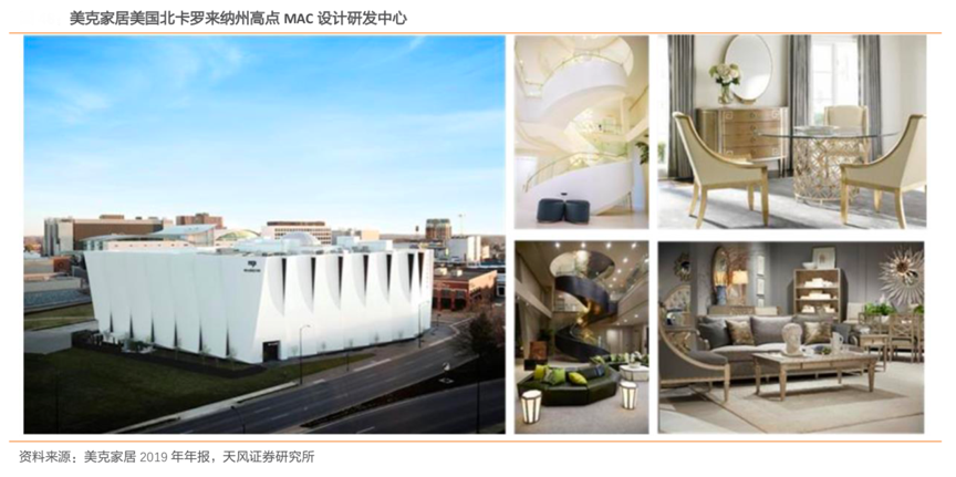 經(jīng)典案例:根據(jù)美克家居2019年年報(bào)、天風(fēng)證券研究所等綜合資訊表明,2019 年 4 月 4 日,美克家居公司 MAC 設(shè)計(jì)研發(fā)中心在美國(guó)北卡羅來(lái)納州高點(diǎn)市盛裝啟幕。該設(shè)計(jì)研發(fā)中心旨在展示其家具產(chǎn)品,同時(shí)也將作為在美國(guó)北卡羅來(lái)納州高點(diǎn)的家居藝術(shù)中心,吸引來(lái)自世界各地的優(yōu)秀設(shè)計(jì)師和藝術(shù)家進(jìn)行交流。